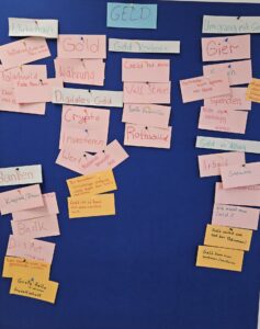 Am Mittwoch haben wir unseren Methodentag durchgeführt. Dazu wurden in allen Jahrgängen Methoden erprobt, die den Lernprozess fördern sollen. Exemplarisch ist hier die „Kartenabfrage“ aus der 11a, mit deren Hilfe man komplexe, große Themen strukturieren kann, um sich einen besseren Überblick zu verschaffen.